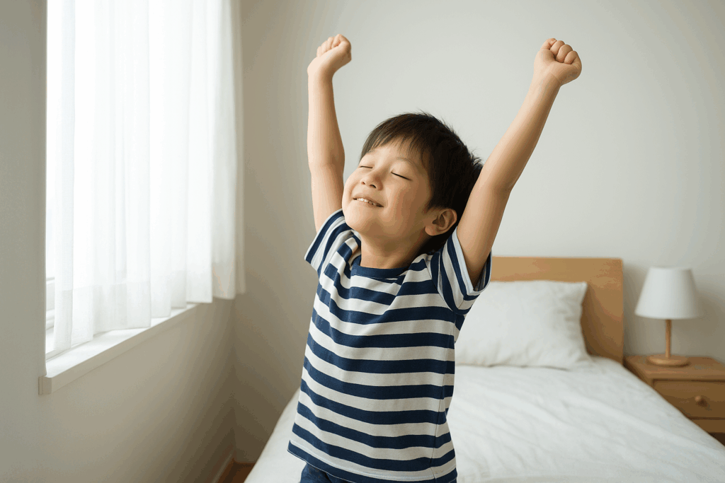 朝起きたらカーテンを開け、日光を浴びる習慣をつけると体が「一日の始まりだ」と感じます。朝ごはんの前にベランダで深呼吸をするなど、親子で簡単にできる工夫がおすすめです。